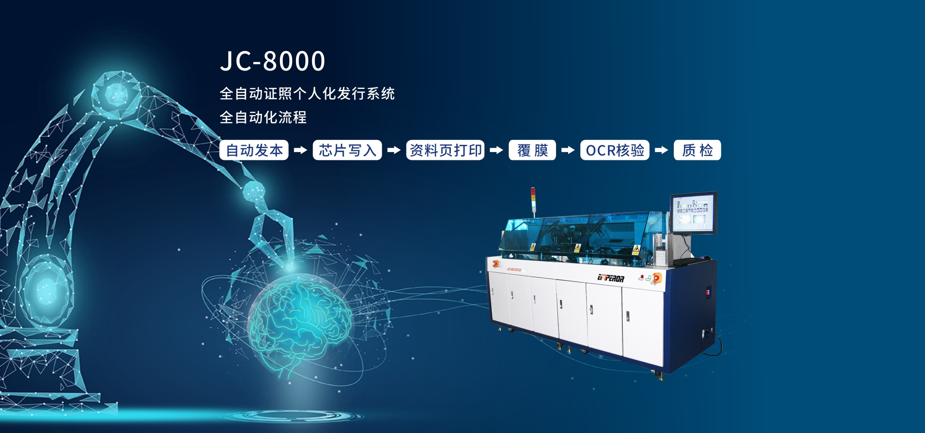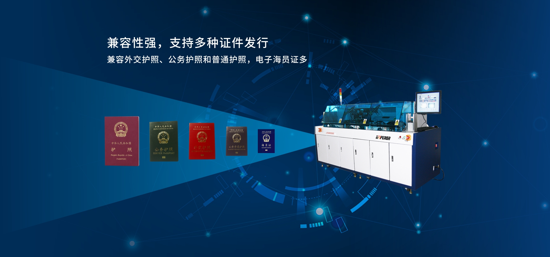 JC-8000电子护照(ePassport)一体化制证设备是目前世界上先进的护照制证一次成型制证设备。系统符合国际民航组织(ICAO)机读旅行证件标准。设备集发证、翻页、OCR拍照、电子芯片读写、废证剔除、打印、覆膜、质检、合页、收证、分检功能于一体,极大地提高了工作效率和工作质量。是电子护照(ePassport)及其它机读旅行证件个人化制作单位不可缺少的智能化设备。